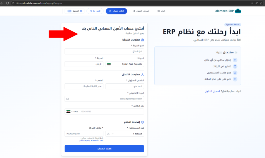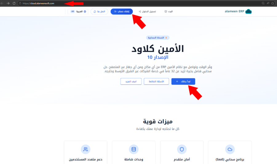 رابط إنشاء الحساب: https://cloud.alameensoft.com/